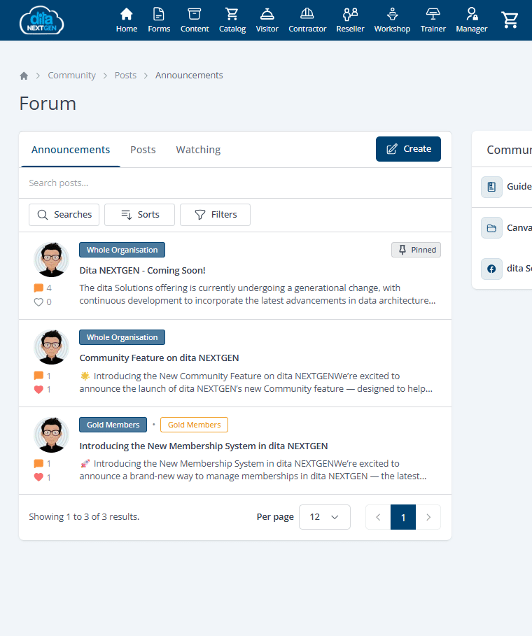 The Community feature allows organisations to share updates and encourage discussion.