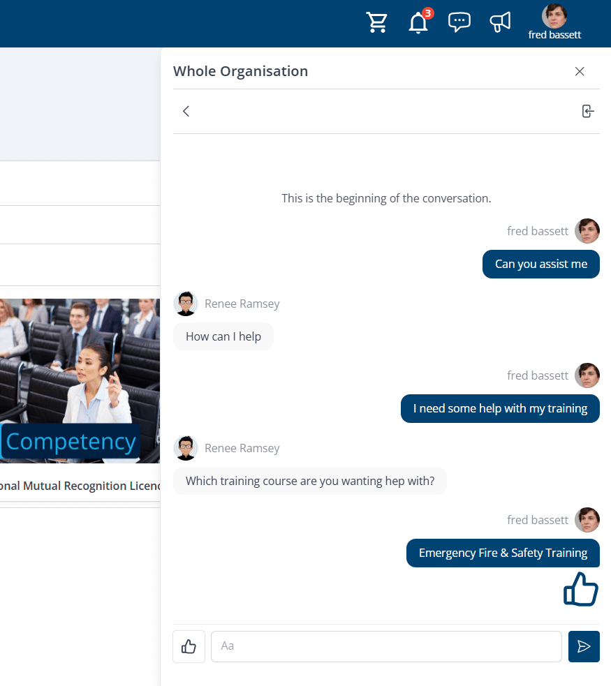 Engage with peers and trainers through collaborative chat spaces.